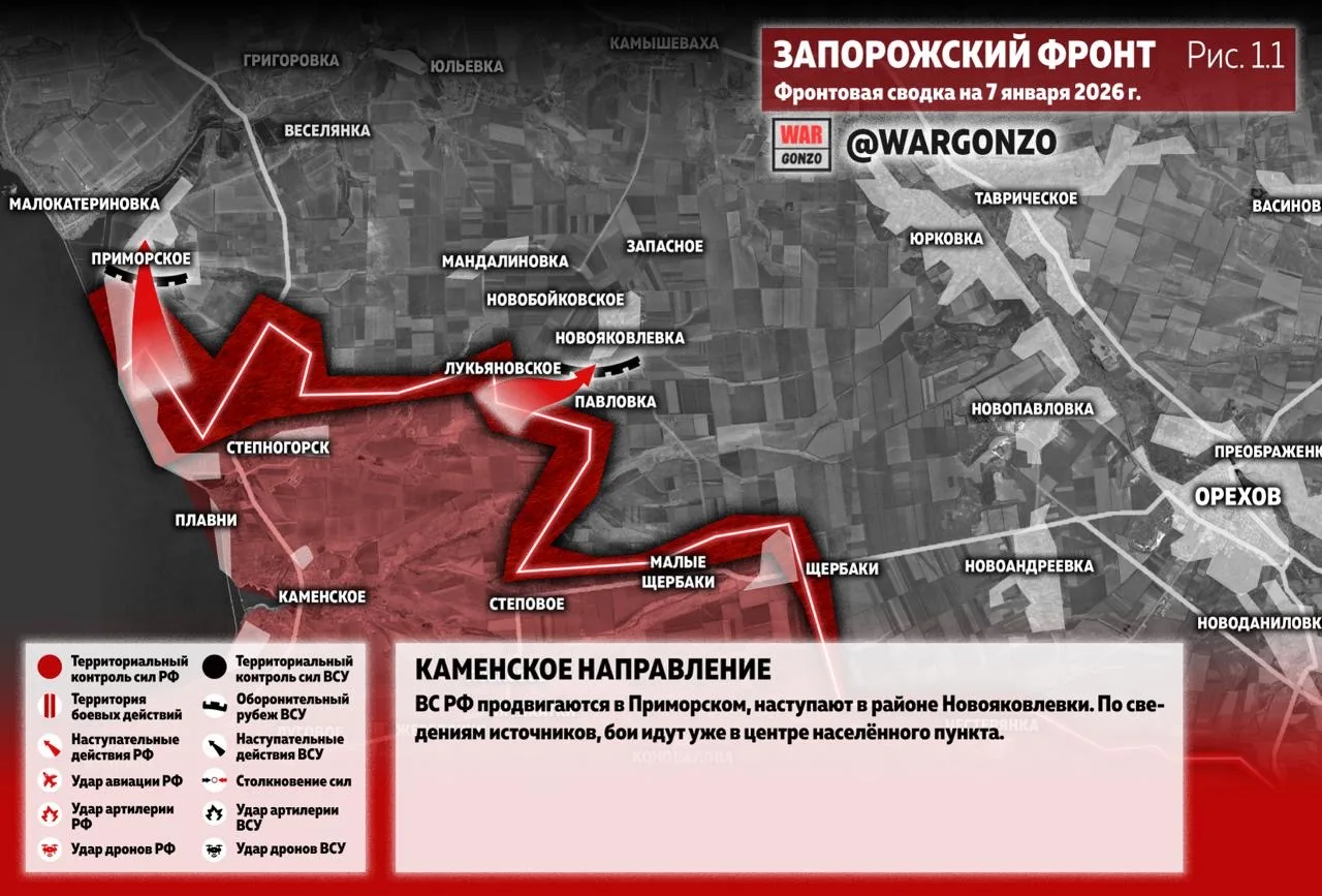 ВС РФ продвигаются в Приморском, наступают в районе Новояковлевки. По сведениям источников, бои идут уже в центре населённого пункта. (Рис. 1.1)
