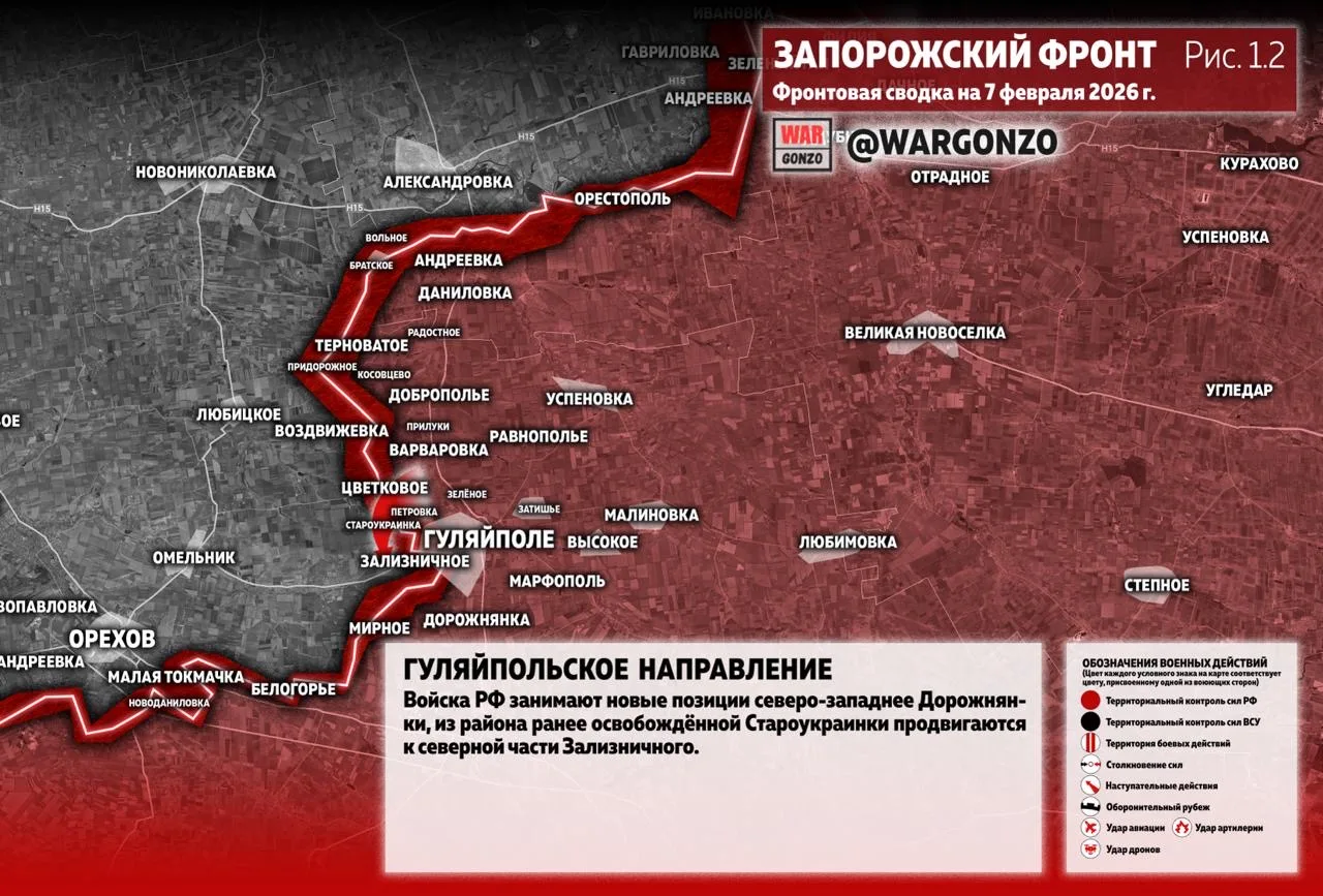 На Гуляйпольском направлении войска РФ занимают новые позиции северо-западнее Дорожнянки, из района ранее освобождённой Староукраинки продвигаются к северной части Зализничного. (Рис. 1.2.)