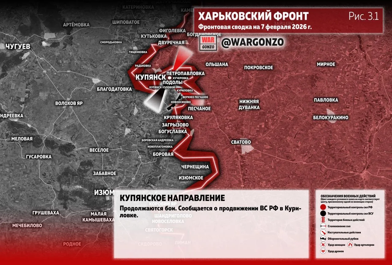 На Купянском направлении продолжаются бои. Сообщается о продвижении ВС РФ в Куриловке. (Рис. 3.1)