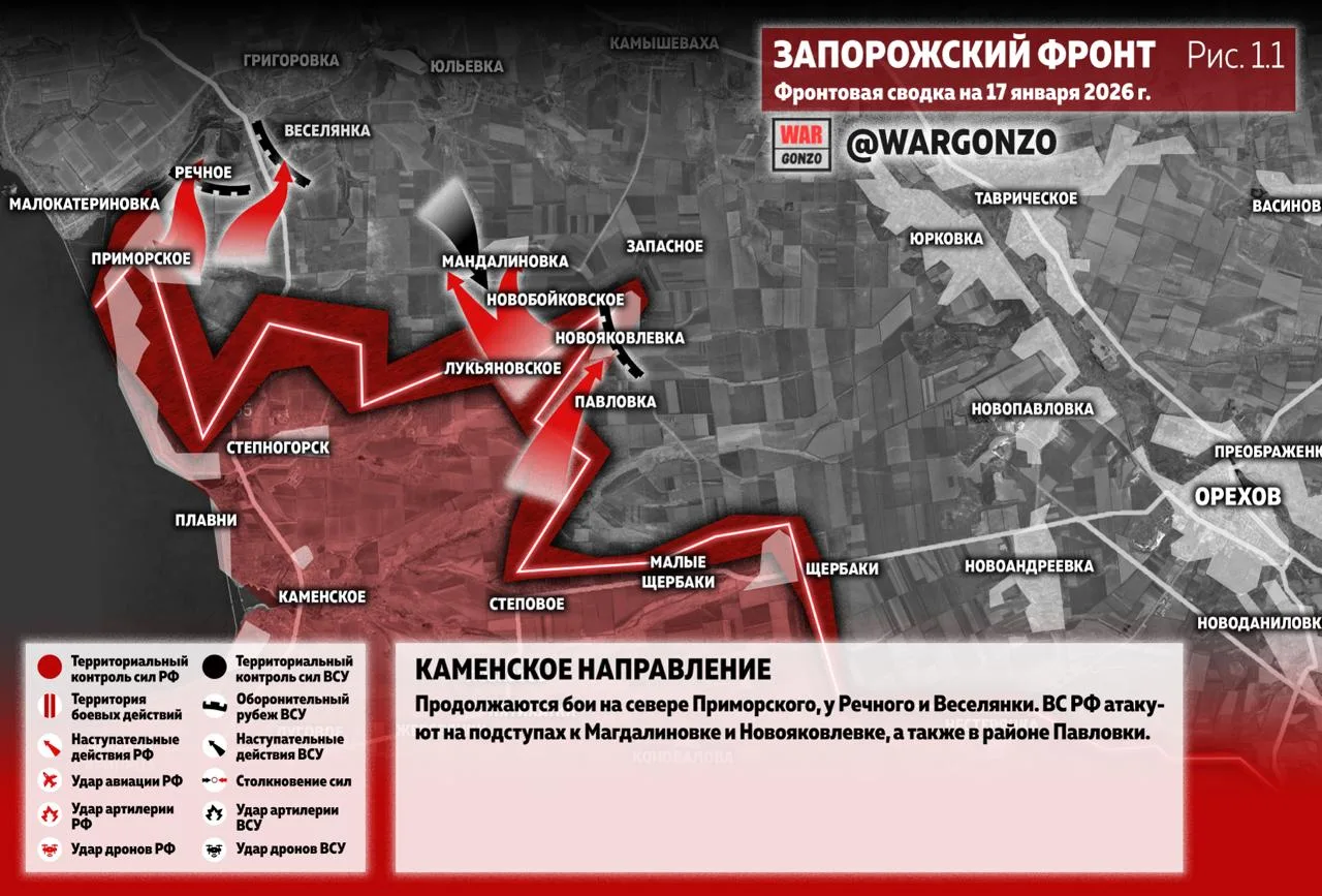 Продолжаются бои на севере Приморского, у Речного и Веселянки. ВС РФ атакуют на подступах к Магдалиновке и Новояковлевке, а также в районе Павловки. (Рис. 1.1) На Гуляйпольском направлении войска РФ расширяют плацдарм на западном берегу реки Гайчур. Есть продвижение севернее Святопетровки, а также в районе Косовцево. Минобороны РФ сообщило об освобождении Еленоконстантиновки севернее Гуляйполя. (Рис. 1.2)