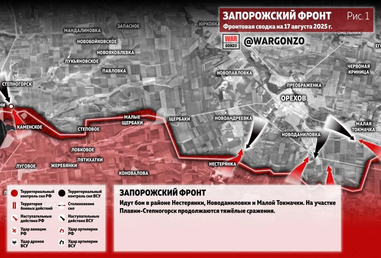 Запорожский фронт. Идут бои в районе Нестерянки, Новоданиловки и Малой Токмачки. На участке Плавни-Степногорск продолжаются тяжёлые сражения. (Рис. 1)