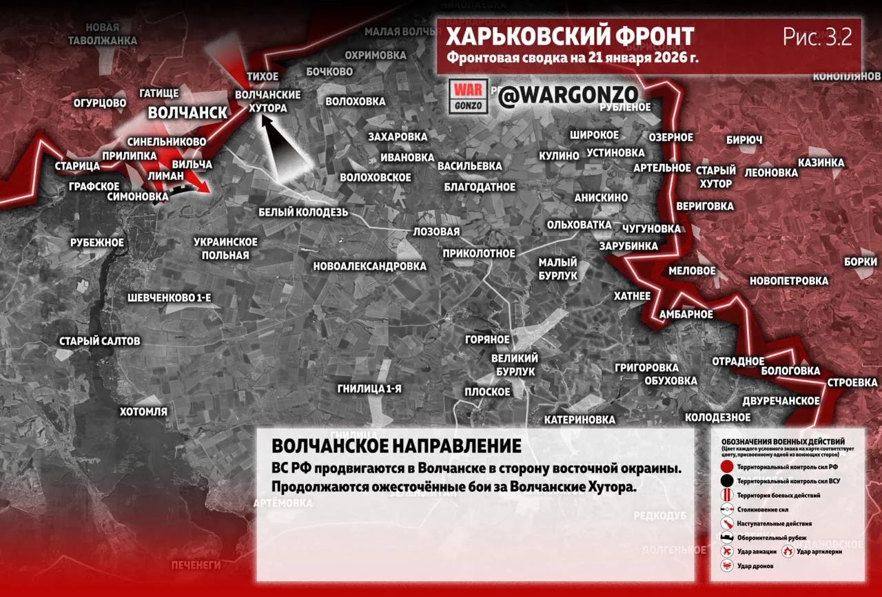 На Волчанском направлении ВС РФ продвигаются в Волчанске в сторону восточной окраины. Продолжаются ожесточённые бои за Волчанские Хутора. (Рис. 3.2)