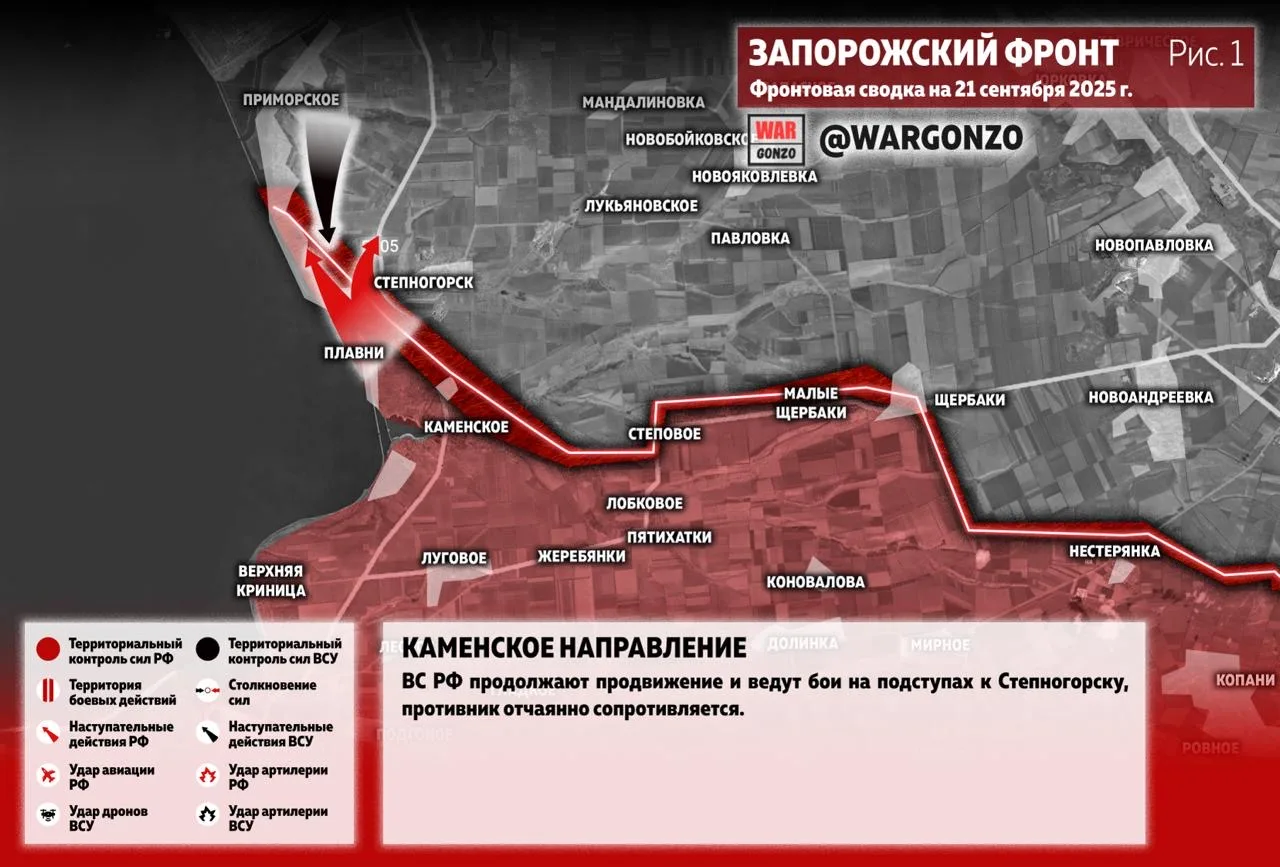 ВС РФ продолжают продвижение и ведут бои на подступах к Степногорску, противник отчаянно сопротивляется. (Рис. 1)