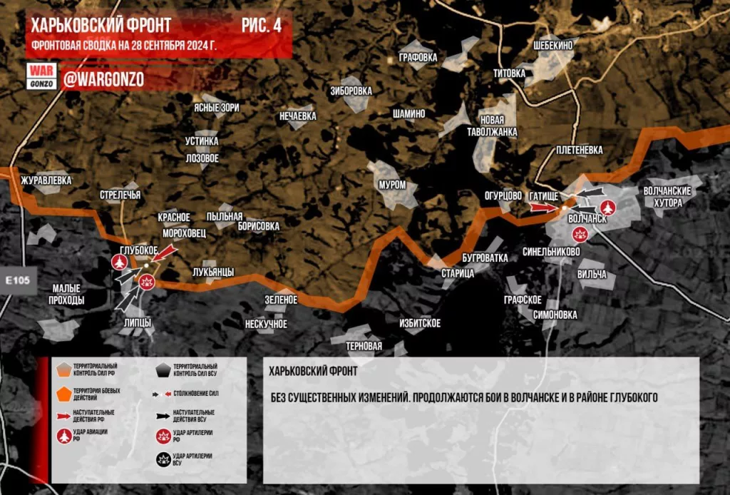 Харьковский фронт. Без существенных изменений. Продолжаются бои в Волчанске и в районе Глубокого. (Рис. 4)
