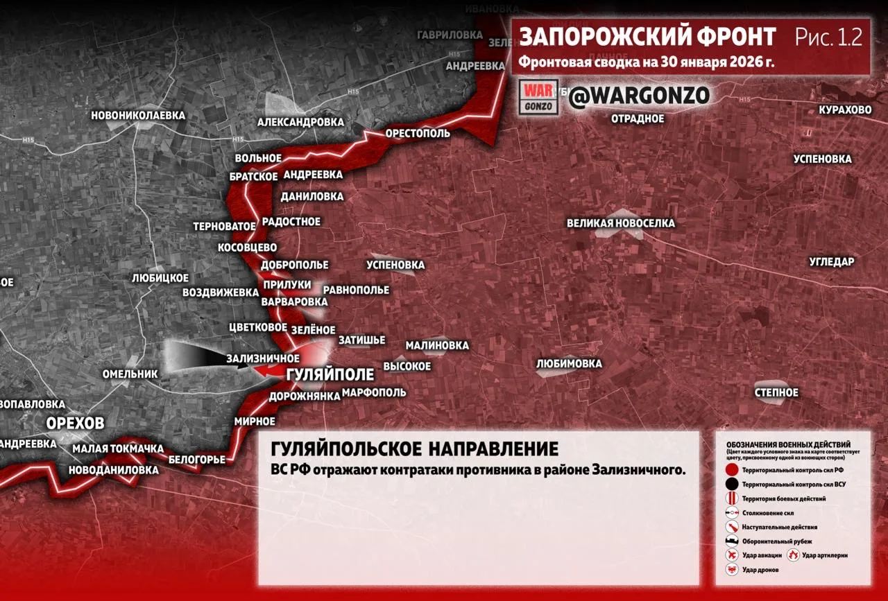 На Гуляйпольском направлении ВС РФ отражают контратаки противника в районе Зализничного. (Рис. 1.2)