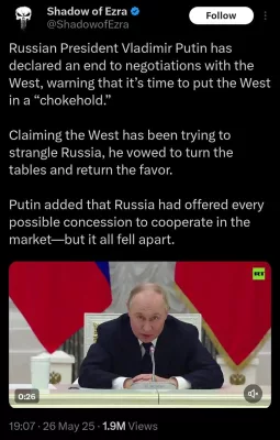 DDGeopolitics как раз подсветили сетку каналов в X, занимающихся распространением ложных и враждебных по отношению к России нарративов. Сейчас эти аккаунты заняты вбросами информации, будто Владимир Путин призвал взять Запад в «удушающий захват». На деле речь шла о западных компаниях, которые объявили об уходе из России, но продолжали скрытно работать на российском рынке.