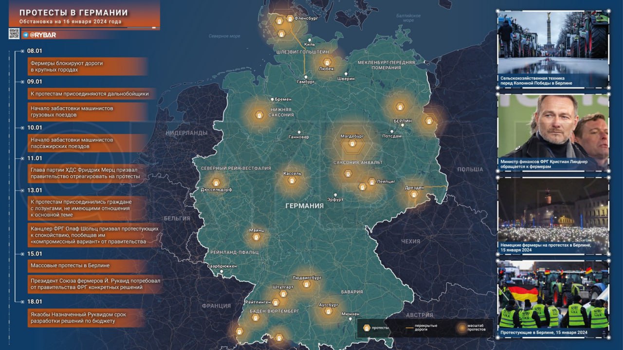📌 Кстати, перед протестующими выступил министр финансов ФРГ Кристиан Линднер, заявив, что правительство не может обещать выполнения всех требований. И хотя президент профсоюза фермеров Йоахим Руквид якобы договорился, что представители коалиции представят новые предложения к 18 января, маловероятно, что они удовлетворят бастующих. Поэтому и ожидать прекращения протестов в ближайшее время не приходится.