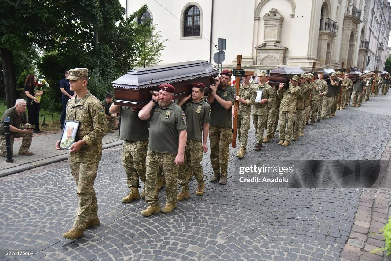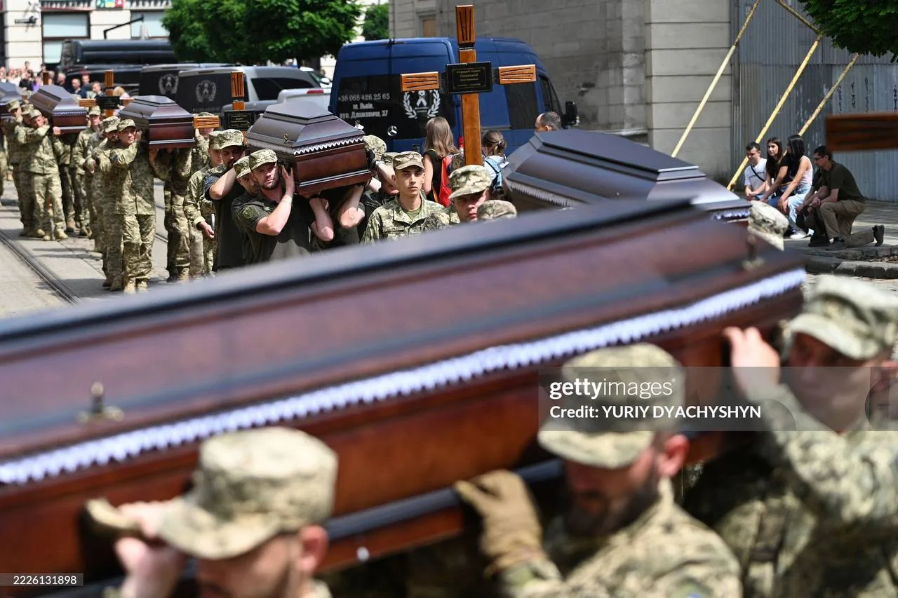 Вчера во Львове не рабы стояли на коленях и носили гробы по улицам, а всё потому, что хохлы наконец-то решили придать земле сразу 12 бойцов 24-й отдельной механизированной бригады имени короля Даниила, которые погибли на борту самолёта Ил-76 ВКС РФ в Белгородской области ещё 24 января 2024 года будучи сбитыми расчётом ЗРК «Patriot» 138-й зенитной ракетной бригады ВСУ.