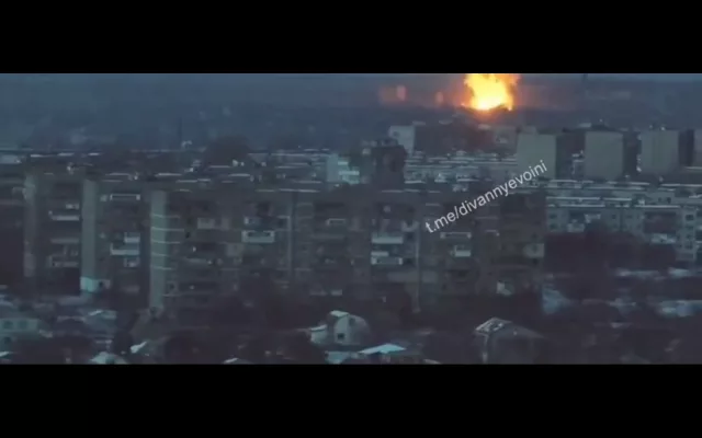 Учитывая, что возгорание возникло довольно сильное, не исключено, что под удар попало военное снаряжение или боеприпасы.