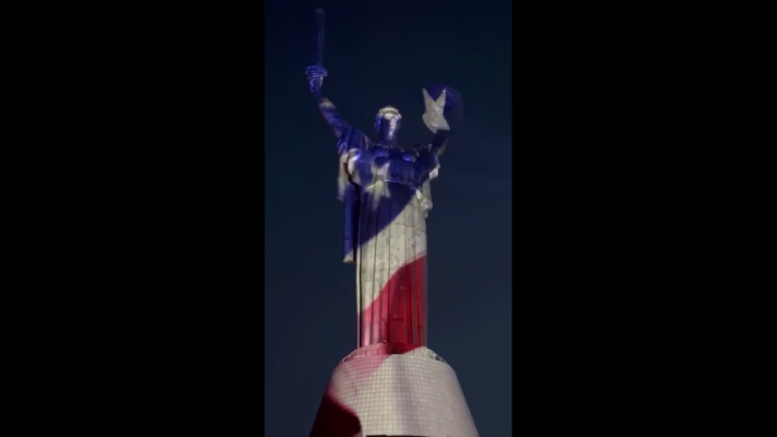 Киевские власти украсили цветами американского флага знаменитую советскую скульптуру Родины-Матери, по-лакейски поздравив заокеанского барина с Днем рождения. И это даже не хочется комментировать.