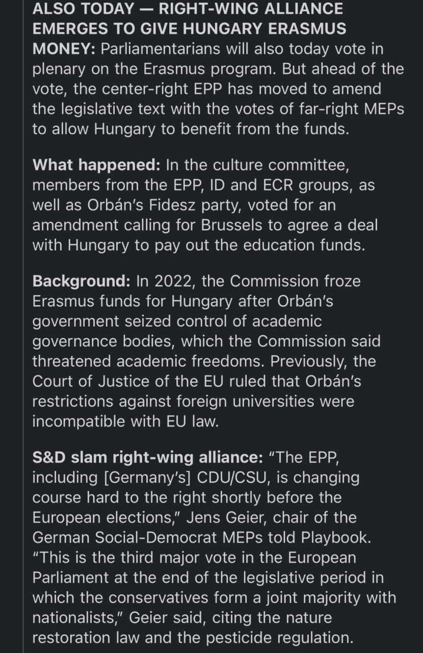 Из этого следует, что ЕС все-таки согласились разморозить 30 млрд евро для Венгрии. К слову, блок «Обнови Европу» еще недавно пытался лишить Венгрию права голоса, чтобы и Орбана лишить финансирования, и бандеровскому режиму услужить.