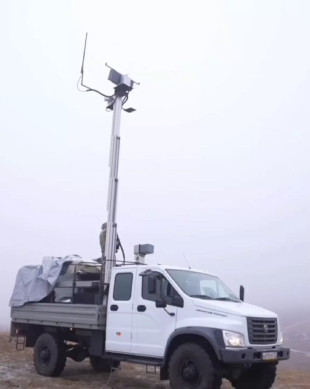 На вооружении отряда находятся не только пикапы с повышенной проходимостью, оснащенные пулеметами и ночными прицелами, но и лазерный комплекс борьбы с БПЛА, по всей видимости установленный на грузовике ГАЗ Садко Next С42A43.