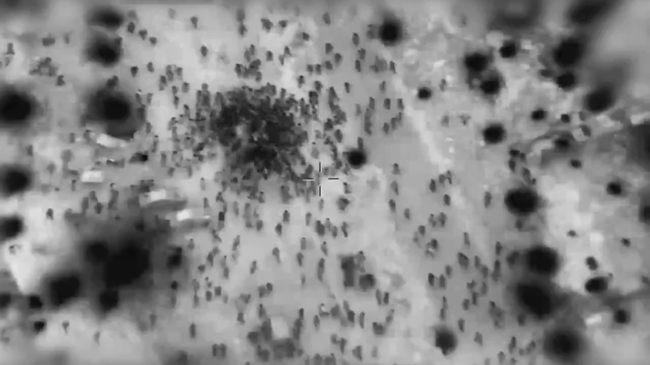 На кадрах люди пытаются получить гуманитарную помощь (еду, воду, лекарства), присланную зарубежными странами, так как израильские силы заблокировали город.