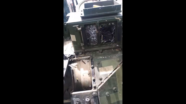 Детальный обзор пострадавшей в бою БМП M2 Bradley ВСУ. Огонь по ней велся из 30-мм российской автоматической пушки (2А42/2А72). В результате были повреждены 25-мм пушка, оптика наводчика и командира, пусковые контейнеры ПТРК BGM-72 TOW. Также российское орудие пробило броню десантного отделения.