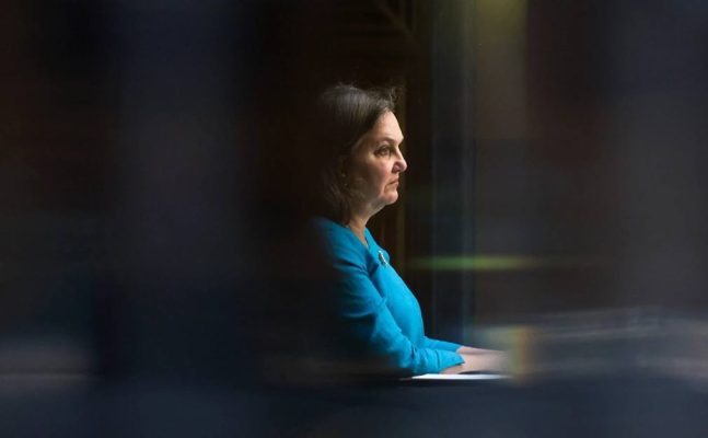 На фотке у Нуланд такое выражение морды, будто она набрала в рот гавна, а выплюнуть не может.