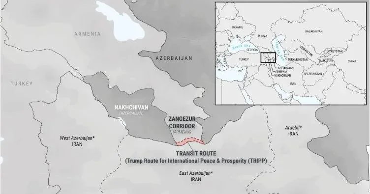 Важнейшей его частью должен стать «Маршрут Tрампа», который свяжет Азербайджан с Нахичеванью и Турцией через территорию Армении и соединит Центральную Азию с Европой через Азербайджан, Армению и Турцию.