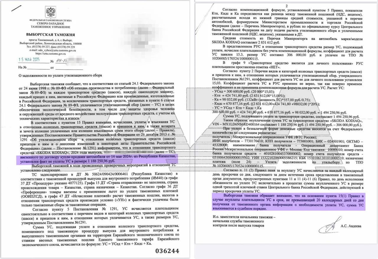 С весны 2024 года в Россию ввезли более 30 тысяч автомобилей Hyundai, Kia и Skoda казахстанской сборки в рамках ЕАЭС. Поскольку их производили в особой экономической зоне, владельцы при ввозе платили только «коммерческий» утильсбор от 667 тысяч до 1,9 млн рублей. Однако с октября ФТС начала массово требовать доплаты — от 750 тысяч до 3,5 млн рублей. Свое решение таможня объяснила тем, что у автомобилей из Казахстана есть импортная декларация. В случае неуплаты владельцам грозит аннулированние ЭПТС.