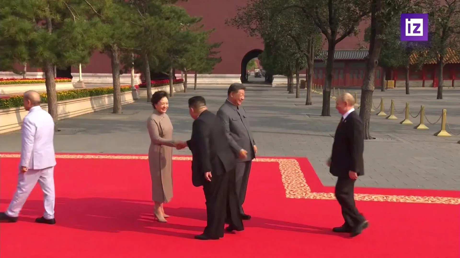 Лидер принимающей стороны Си Цзиньпин тепло встретил Владимира Путина, после чего они вместе с Ким Чен Ыном выказали уважение китайским ветеранам, воевавшим с японскими оккупантами.
