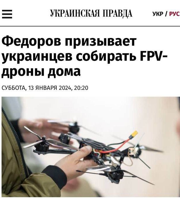 Пройти обучение и собирать «домашние» FPV-дроны предлагает вице-премьер, министр цифровой трансформации Михаил Федоров.