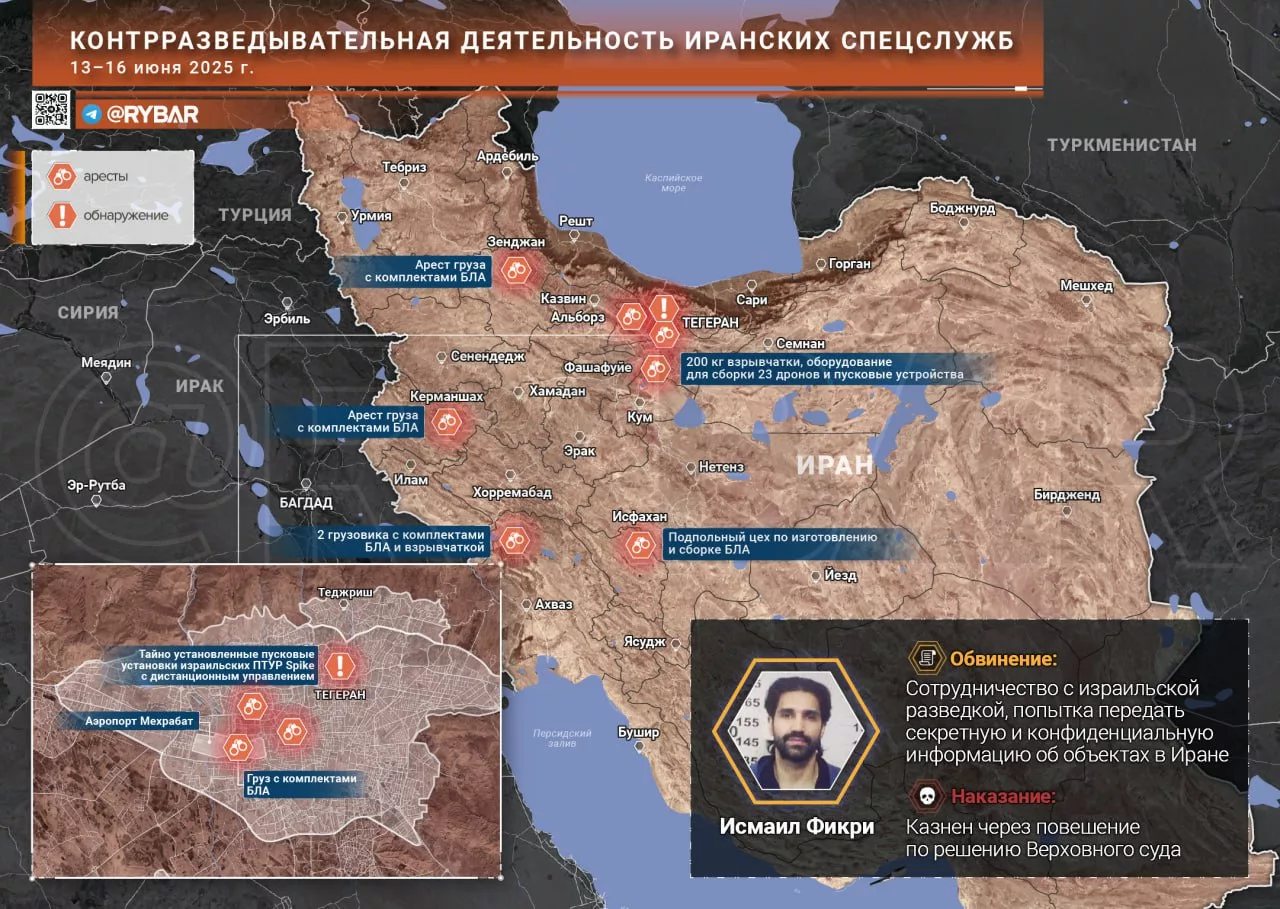 С начала эскалации иранские спецслужбы провели серию операций по задержанию предполагаемых агентов «Моссада» и пресечению диверсий внутри страны. Активное внутреннее противодействие стало важной частью ответа на израильские удары.