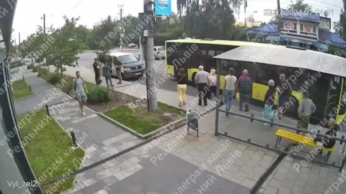 На видео видно, как сотрудники ТЦК сначала общались с одним мужчиной, а затем остановили другого, который шел с остановки.