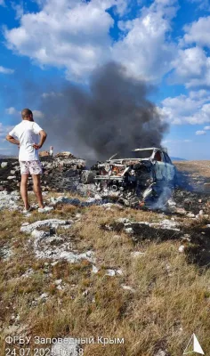 Оперативники из «Заповедного Крыма» составили протокол и начали административное дело. Водителю сгоревшей машины придется покрыть нанесенный экологии значительный ущерб.