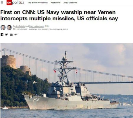 - Военный корабль США: CNN со ссылкой на американских чиновников заявил, что ракеты, выпущенные по американскому кораблю, были выпущены хуситами (Ансаруллами). По данным этого американского канала, военный корабль USS Carney в среду вошел в Красное море из Суэцкого канала. Сообщается, что ракет было три и все они были перехвачены.