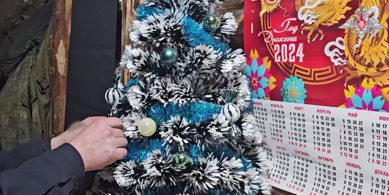 Бойцы украшают блиндажи и землянки праздничными гирляндами, установливают елки, а также развешивают полученные от школьников и студентов открытки и поздравительные письма.