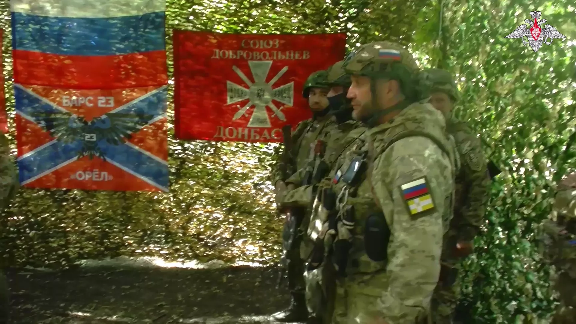 Генерал-майор Александр Туляганов представитель Главного организационно-мобилизационного управления Генерального штаба ВС РФ вручил наиболее отличившимся бойцам государственные и ведомственные награды: ордена Мужества, медали «За отвагу», «За заслуги перед Отечеством», «За храбрость» и «Воин-доброволец».