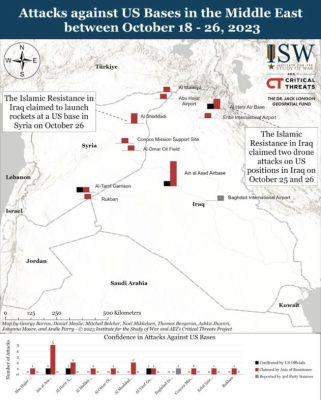 Вчера по базе Аль-Шаддад были выпущены ракеты боевиками «Исламского сопротивления». Также вчера и позавчера беспилотники атаковали американскую базу Аль-Харир.