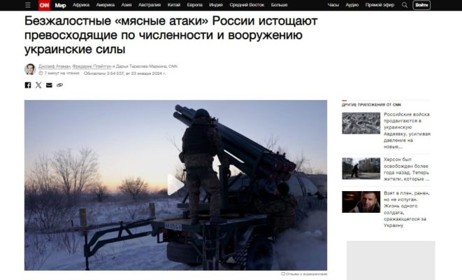 «Недостаток огневой мощи у Украины по сравнению с российской армией является общей темой на линии фронта. У ВСУ недостаточно вооружения и техники, чтобы победить Россию», — передает слова командира боевиков CNN.