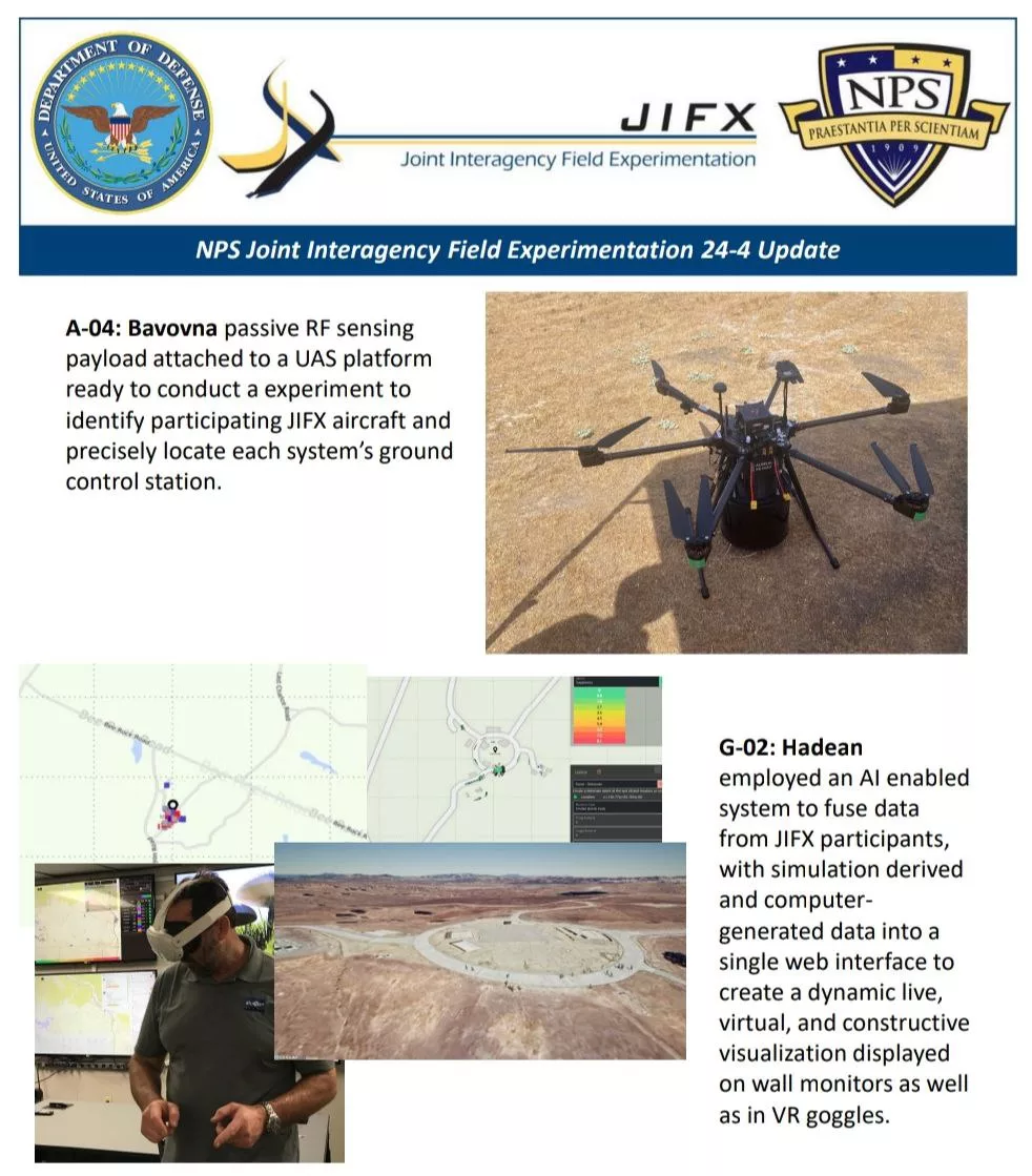 В августе на фондах школы повышения квалификации офицерского состава ВМС США (JIFX NPS) украинская компания Bavovna AI провела тестирование установленного на БпЛА оборудования для идентификации воздушных объектов и определения местоположения наземных станций управления, применения технологии искусственного интеллекта.