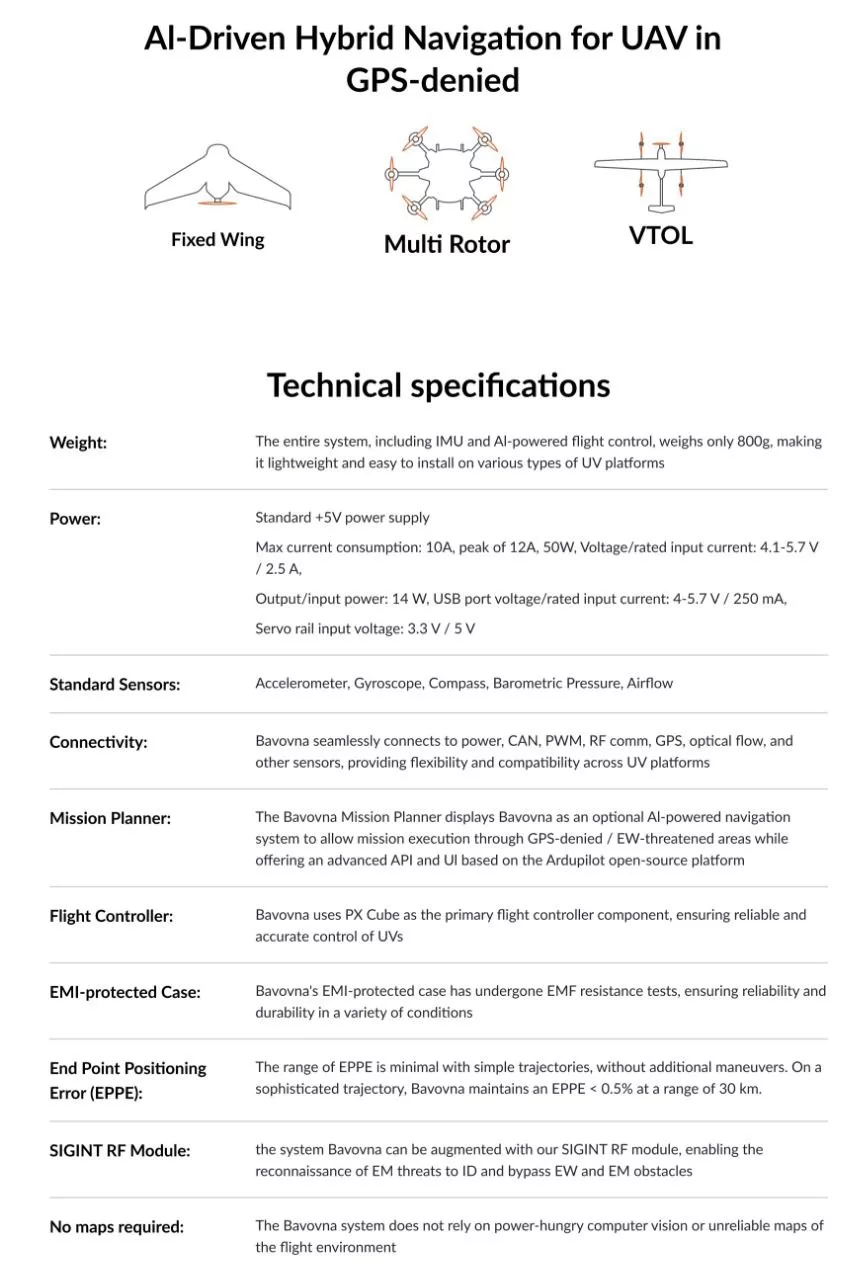 Bavovna AI разрабатывает системы управления воздушными, наземными и морскими дронами на основе ИИ, чтобы беспилотники могли противостоять РЭБ и самостоятельно действовать при отсутствии связи и навигации.