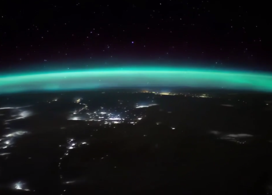 Видео смонтировано из снимков, которые были сделаны во время пролета станции над ночной стороной Земли.