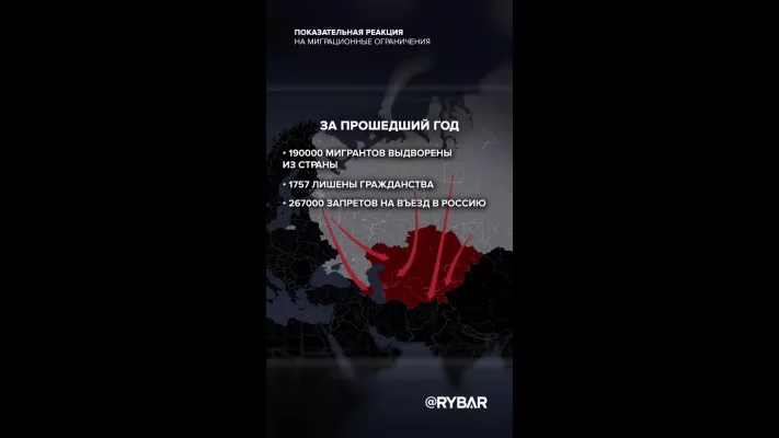 С недавних пор в России стали приниматься меры по ограничениям на работу мигрантов, увеличилось число рейдов. За 2024 год из страны выдворено 190 тысяч иностранцев, вынесено 267 тысяч представлений о запрете на въезд в страну, а 1757 человек были лишены гражданства.