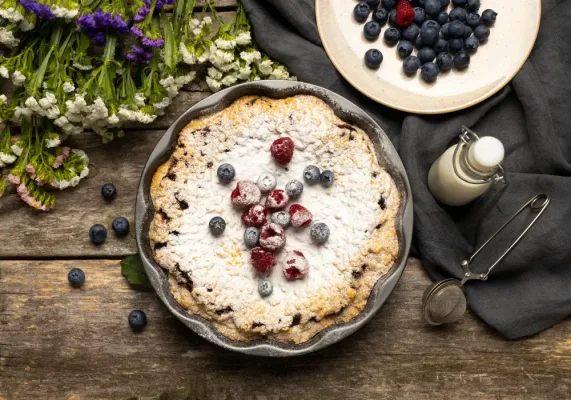 - Подавайте с ягодным соусом, мёдом или фруктовым пюре.