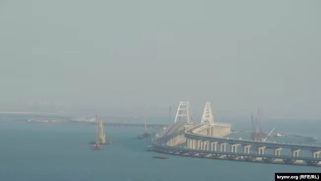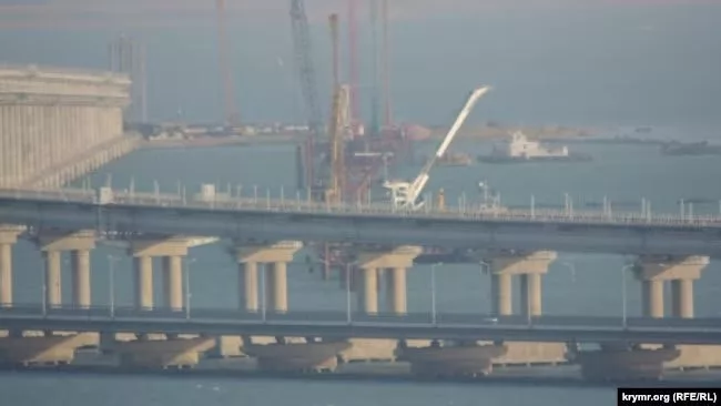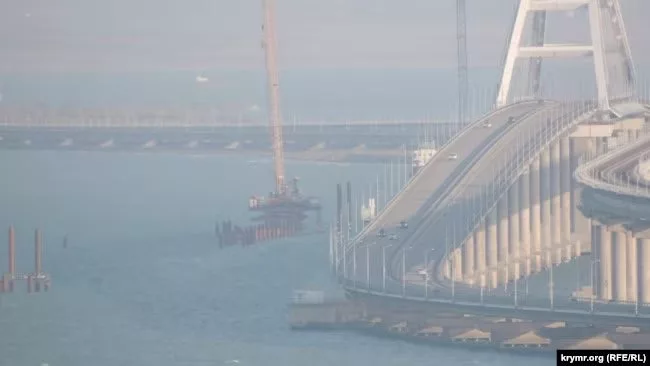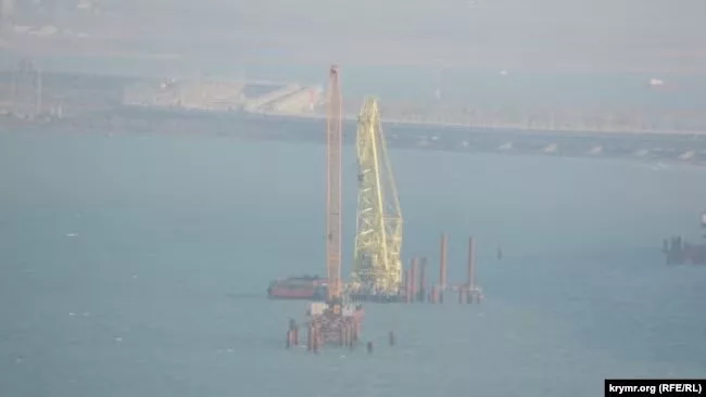 ▪️Украинские СМИ публикуют фото, где сваи забивают в морское дно параллельно мосту со стороны Керченского полуострова.