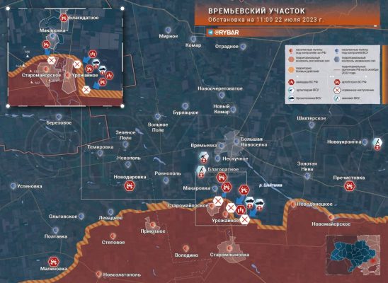 🔻В ночь на 22 июля ВСУ предприняли очередные попытки наступления на Урожайное. Продвижение малых маневренных групп на бронемашинах были выявлено на подступах к селу, в результате чего по наступающим были нанесены авиаудары и огневое поражение артиллерией.