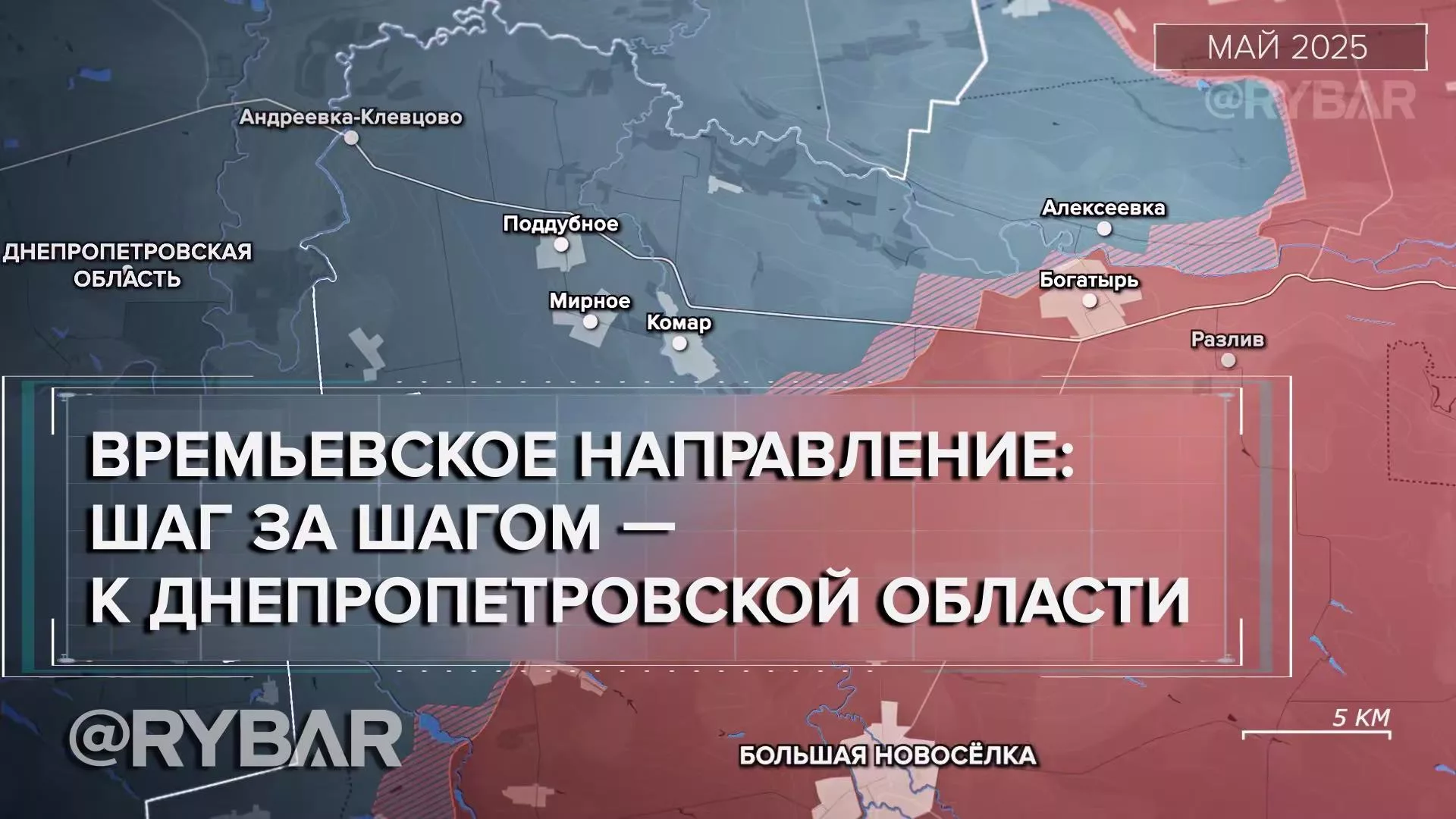 На Времьевском направлении российские войска продолжают наступать сразу на нескольких участках, освобождая населённые пункты и все ближе подбираясь к границам Днепропетровской области т.н. Украины.