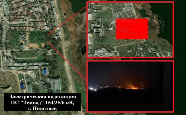 - Спутники NASA зафиксировали пожар в районе электрической подстанции «Темвод» в Николаеве (фото 1). После ударов БПЛА «Молния» с огнём не могли справиться несколько часов, а перебои со светом начались даже в Херсоне.