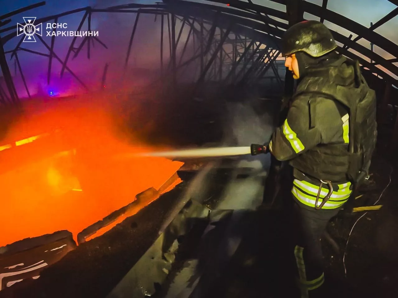 - В Харькове после э атаки возникло пожары, известно, что поражено три военных ангара – пожар, сопровождаемый вторичной детонацией, охватил 1500 м² (фото 2). Также уничтожен пункт постоянной дислокации ВСУ. Местные власти сообщали о разрушенных домах и пострадавших.