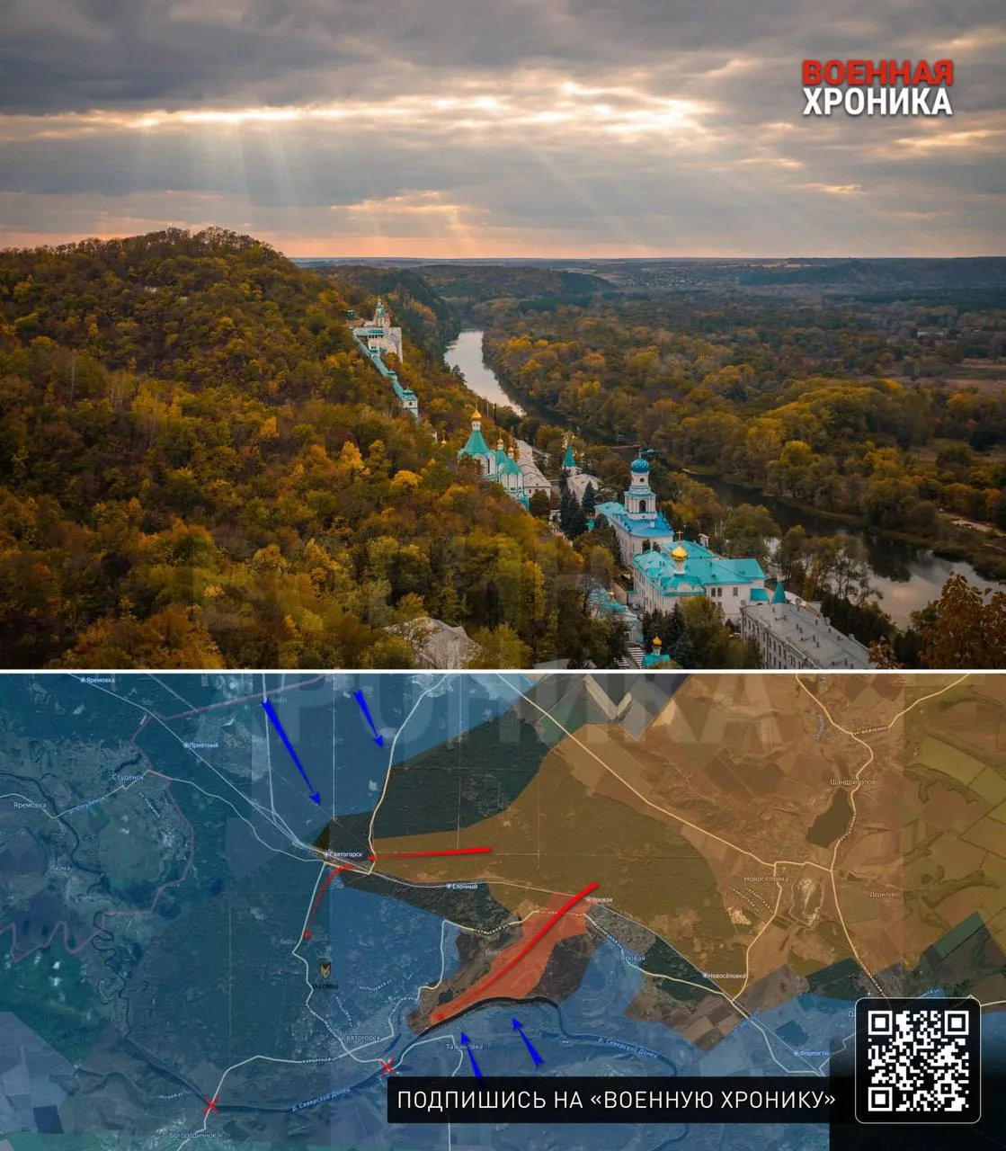 Ещё один сложный момент: на южном берегу Северского Донца в 2 км от Святогорска противник контролирует господствующие высоты (более 180 м) со стороны Святогорской Святоуспенской лавры. Частично перекрыть эти преимущества может доминирование ВС РФ по количеству применяемых FPV-дронов и разведывательных БПЛА.