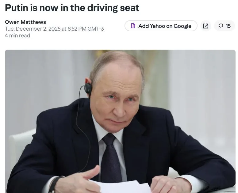 ▪️The Telegraph так и озаглавила материал: Putin is now in driving seat (Путин теперь у руля). Издание признает, что у Москвы сильная позиция: армия продвигается, Зеленский вязнет в коррупционных скандалах, денег на войну у Киева все меньше, а Европа так и не смогла закрыть бюджетную дыру Украины.