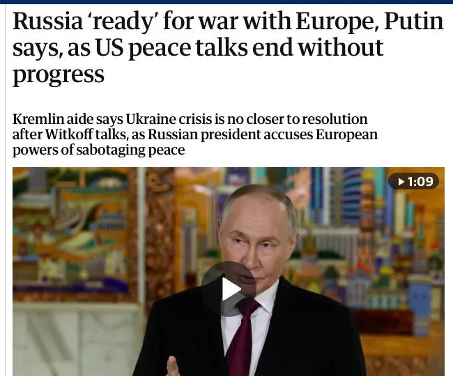 ▪️The Guardian испугался слов Путина о Европе: он заявил, что не хочет войны с ЕС, но если Европа «захочет» воевать – Россия готова хоть сейчас.