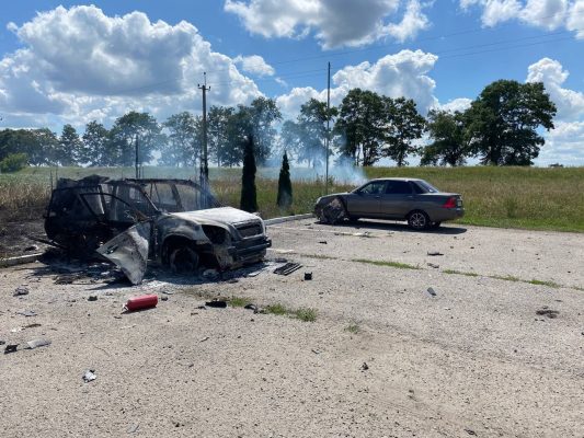 ⚫️ FPV-дрон сдетонировал на парковке коммерческого объекта в поселке Прилесье — один автомобиль сгорел полностью, один получил повреждения.