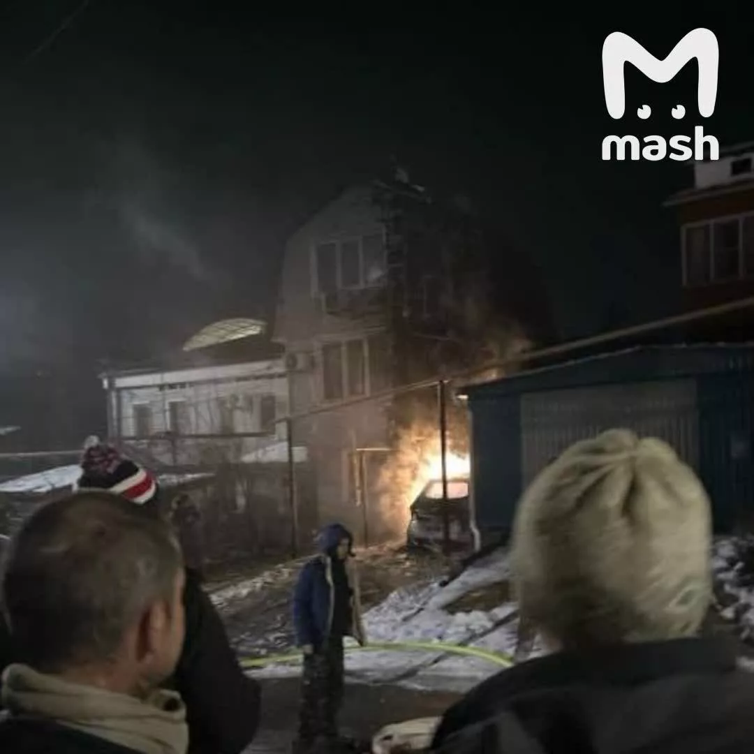 В Туапсе после падения обломков начался пожар. Дом оперативно потушили, машина, которая стояла рядом, — сгорела.