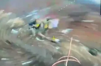 На кадрах слышны звуки взрывов, после которых раздается стрельба.