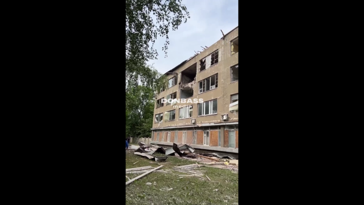 Предварительно, есть прилет по зданию Научно-Исследовательского института в районе Покровского рынка. Мирный житель получил смертельные ранения (1 видео).