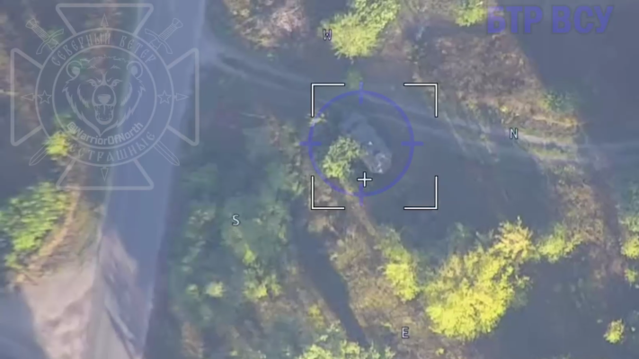 «Иксоводы» группировки «Север» сожгли очередной БТР, укрывшийся за листвой деревьев в Курском приграничье.