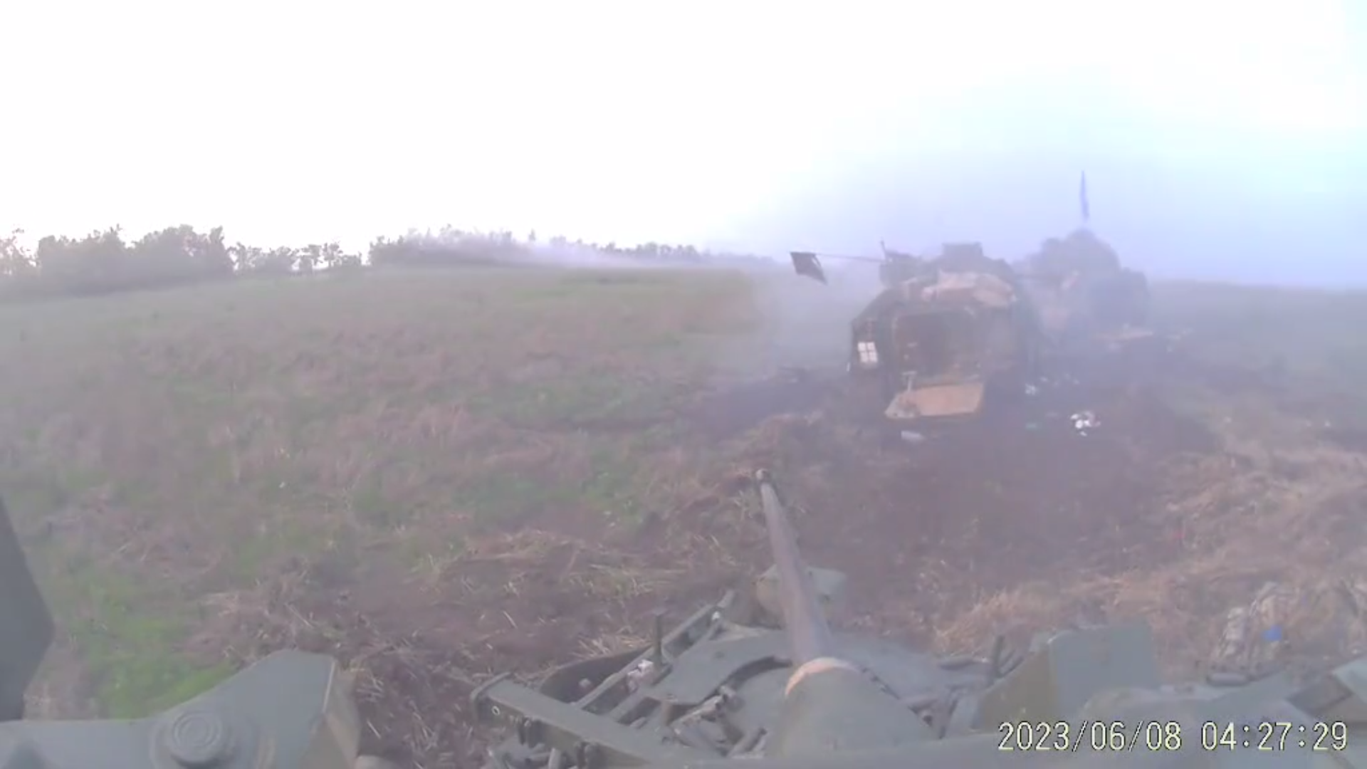 На запорожском направлении во время боя украинские БМП стали спешно покидать свои позиции. Их отход прикрывал экипаж Bradley.